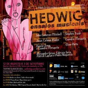 Durante quatro semanas, a partir do dia 12 de agosto, o Teatro Glaucio Gill será palco dos “ensaios musicais”, em formato de show, das canções do espetáculo Hedwig e o Centímetro Enfurecido, de John Cameron Mitchell, letras e música de Stephen Trask e direção de Evandro Mesquita, que também assina a tradução e adaptação com Jonas Calmon Klabin. No elenco, Paulo Vilhena, Pierre Baitelli e Eline Porto, acompanhados pelos músicos Alexandre Griva (bateria), Fabrizio Lorio (teclado), Patrick Laplan (baixo) e Pedro Nogueira (guitarra).