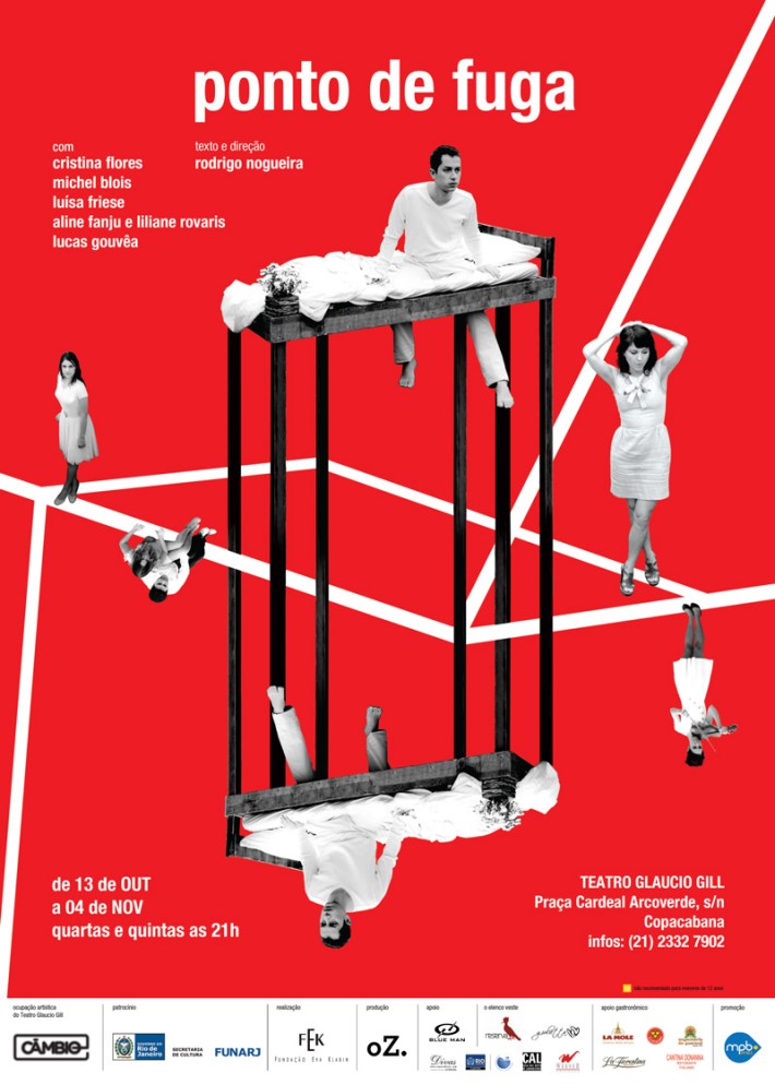 Ao decorrer da peça, Ponto de Fuga, faz uma pesquisa sobre a dicotomia entre o som e o sentir (sentir é “ouvir” em algumas línguas) através do texto falado: a repetição das mesmas falas em volumes, ritmos e modulações diferentes muda o significado. E também investiga a perspectiva espacial através da divisão do palco e a realocação de peças do cenário: a mudança de “frentes” e a repetição de gestos em personagens diferentes vai conferindo novos contornos à cena.